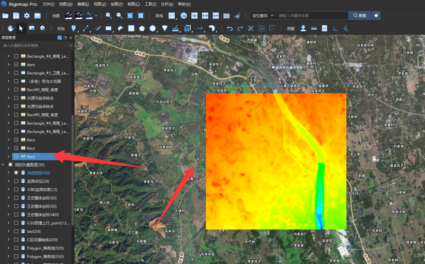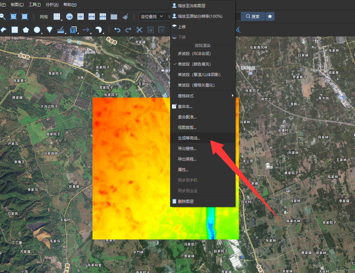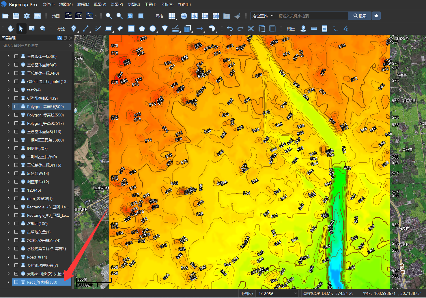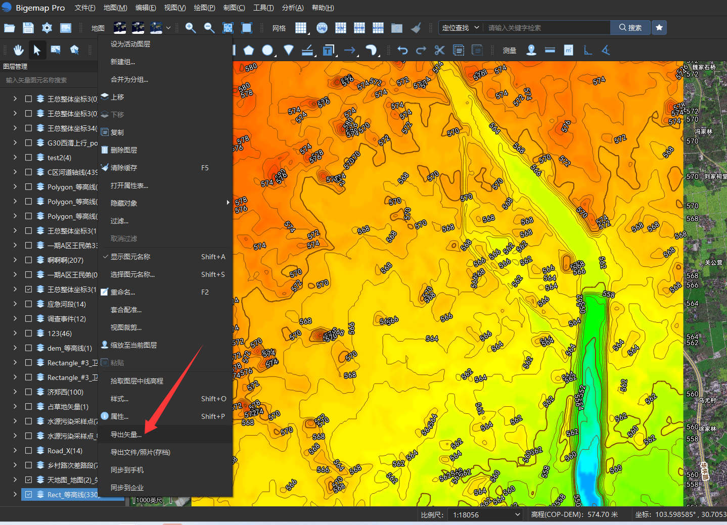 导出等高线,坐标列表,指着生成的等高线图层,右键菜单,选择【导出矢量】