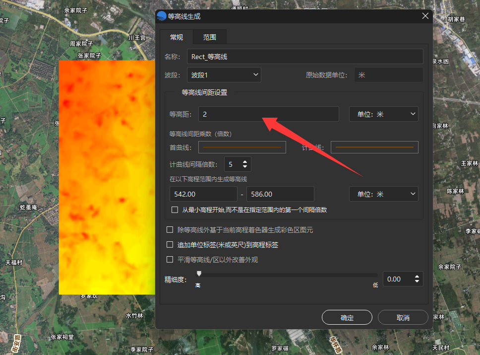 弹出的对话框中,设置你想要的等高距,然后点确定,如下图