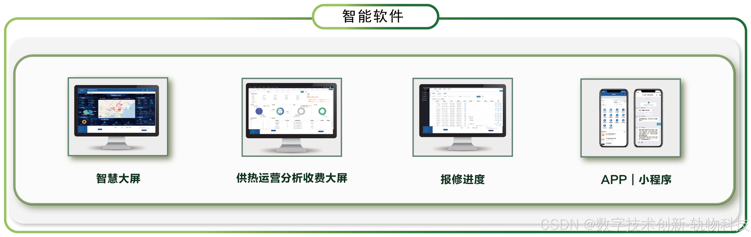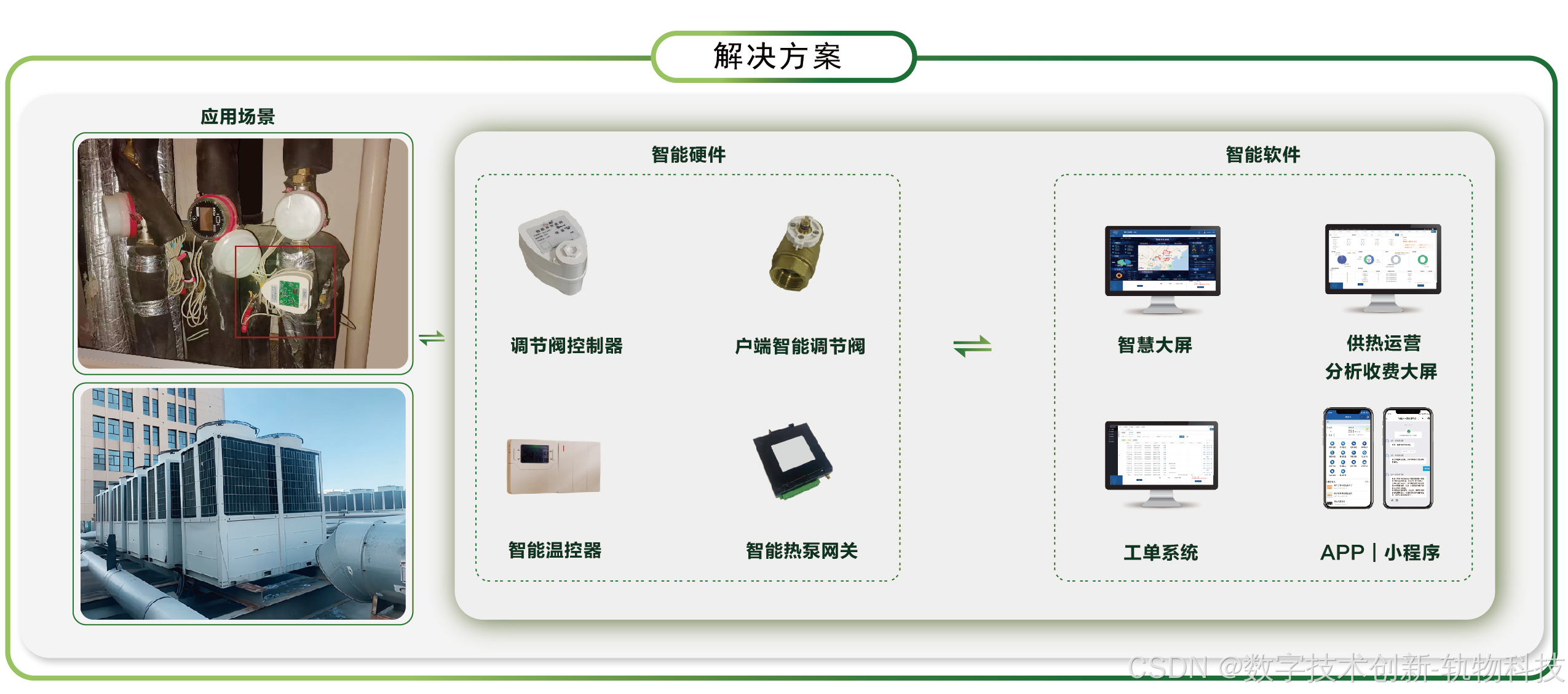 - 应用层:通过可视化运维平台、用户端APP、能源管理报表等,实现供热系统全链条的数字化管理和精准服务。