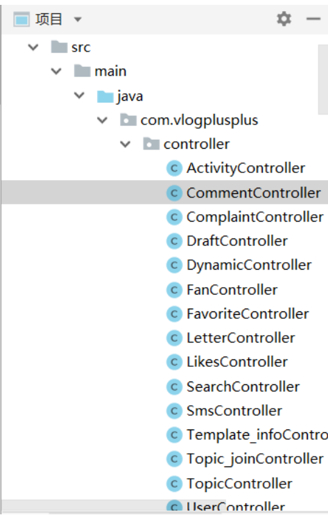 2. 用IEDA打开后端的工程并运行,观察controller文件夹下的文件,controller这一层是接受前端请求的。这里按照一个数据表一个文件进行分类。