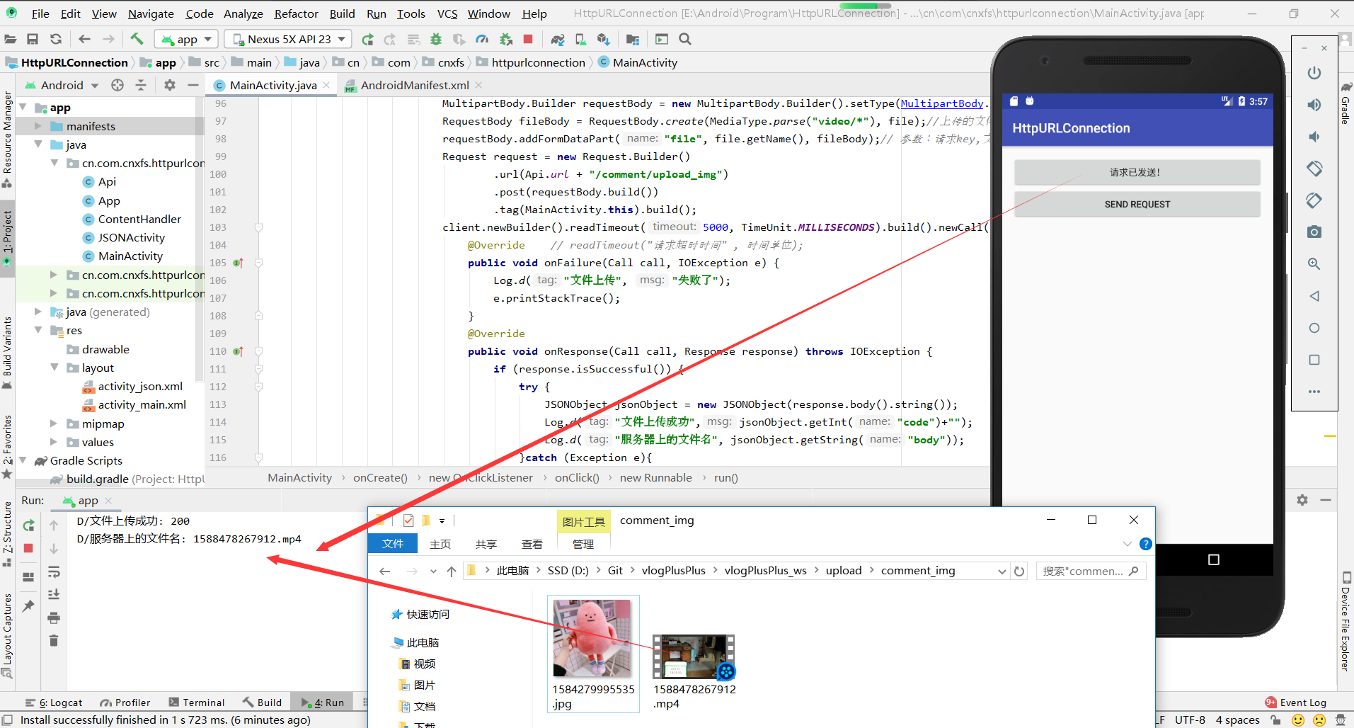 切换到AS,如下图代码所示将文件上传到后端接口上