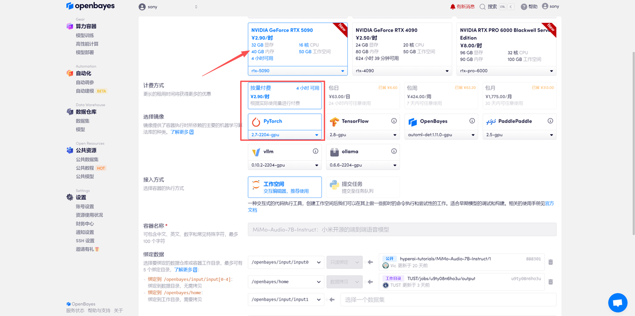 使用云平台:OpenBayes