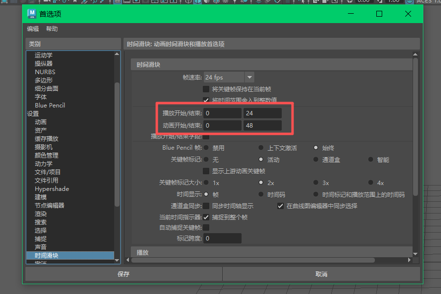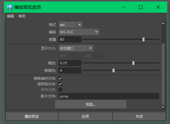 时间滑块 右键--播放预览 选项