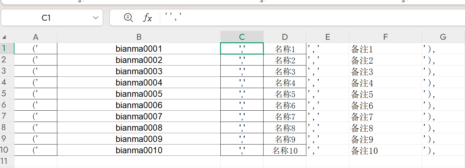 步骤:①将excel表转成插入语句所需的格式,注意excle表中转义字符'