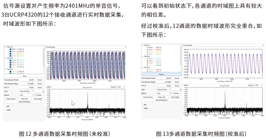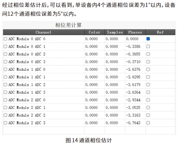 我们以分布式高精度测向定位应用为案例,展示了宽带多通道同步采集系统的设计与部署实现,并且测试了各通道的同步性能,单设备内4个通道相位误差为1°以内,设备间12个通道相位误差为5°以内。