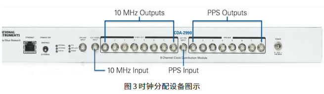 系统使⽤的OctoClock-G CDA-2990是⼀个⾼精度的时钟分配设备,能够使⽤内部的GPSDO或外部的时钟 源产⽣8路同频同相的10MHz参考信号和PPS信号。