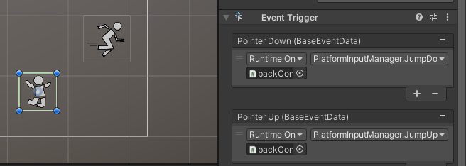 通过对控件的Add Components来添加EventTrigger ,疾跑同理