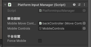 在Script文件夹里面新建一个脚本:PlatformInputManager,并且挂载给backController(黄色底的摇杆底座)