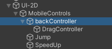 新建脚本,MoveControl:专门处理移动端摇杆事件,同样地,挂载给backController(黄底底座)