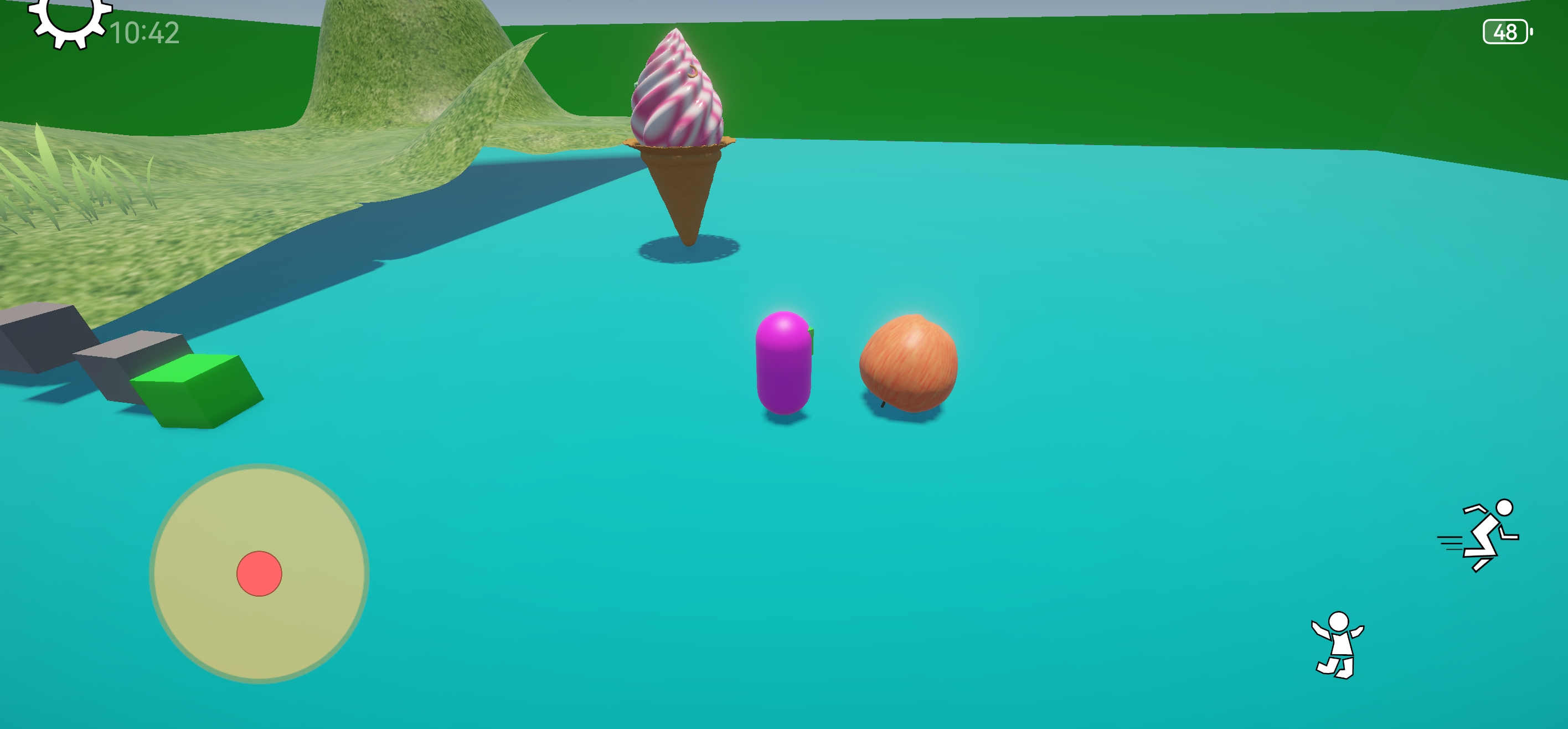 void HandleJump(){if (PlatformInputManager.Instance.IsJumpPressed() && isGrounded){playerVelocity.y = Mathf.Sqrt(jumpHeight * -2f * gravity);}}void HandleMovement(){// 通过PlatformInputManager获取输入Vector2 input = PlatformInputManager.Instance.GetMovementInput();float horizontal = input.x;float vertical = input.y;// 如果是移动端,调整移动速度float speedMultiplier = PlatformInputManager.Instance.IsMobile() ?mobileMoveSpeedMultiplier : 1f;// 移动方向计算Vector3 camForward = Vector3.Scale(cameraTransform.forward, new Vector3(1, 0, 1)).normalized;Vector3 moveDirection = (camForward * vertical + cameraTransform.right * horizontal).normalized;// 应用移动速度Vector3 movement = moveDirection * moveSpeed * speedMultiplier * Time.deltaTime;controller.Move(movement);// 角色朝向移动方向if (moveDirection.magnitude > 0.1f){Quaternion targetRotation = Quaternion.LookRotation(moveDirection);float rotationMultiplier = PlatformInputManager.Instance.IsMobile() ?mobileRotationMultiplier : 1f;transform.rotation = Quaternion.Slerp(transform.rotation,targetRotation,rotateSpeed * rotationMultiplier * Time.deltaTime);}if (isGrounded && playerVelocity.y < 0){playerVelocity.y = -2;}playerVelocity.y += gravity * Time.deltaTime;controller.Move(playerVelocity * Time.deltaTime);}void CheckSpeed()