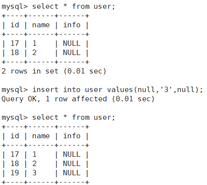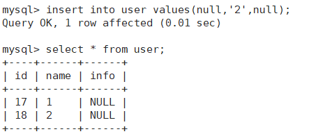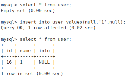 我们先通过以上两条语句,创建一张表,并插入第一条数据。