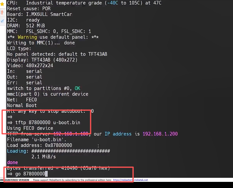 B、从tftp下载 u-boot.imx 到内存 80800000