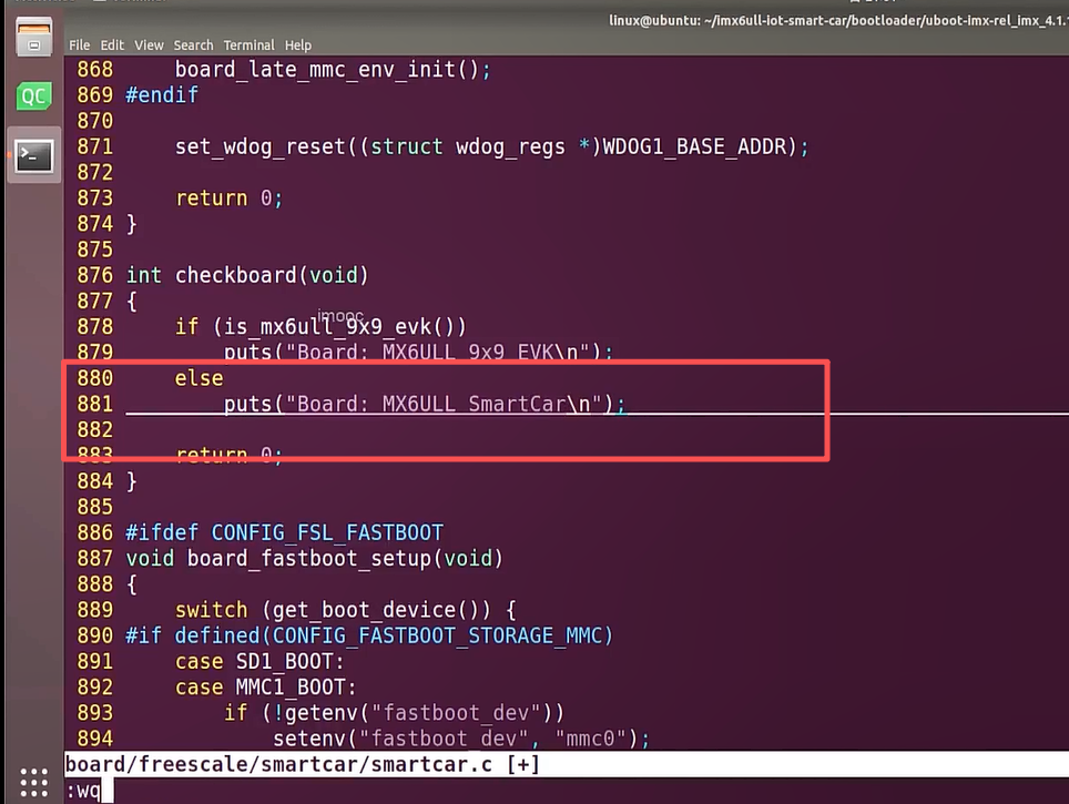 在u-boot源码下的board/freescale目录下添加smartcar开发板