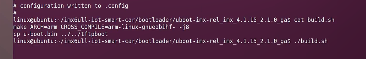 uboot-imx-rel_imx_4.1.15_2.1.0_ga$ make mx6ull_smartcar_defconfig