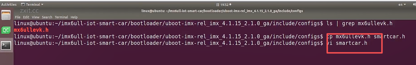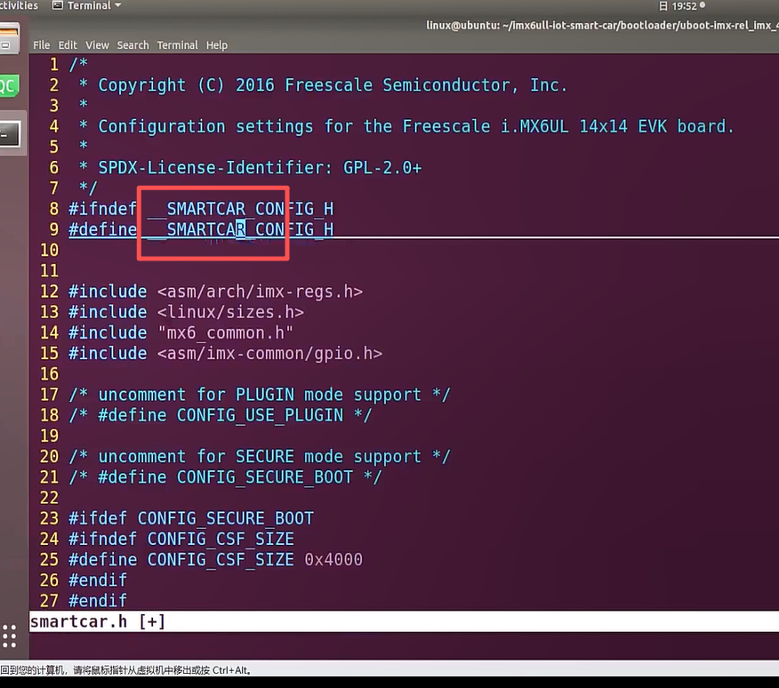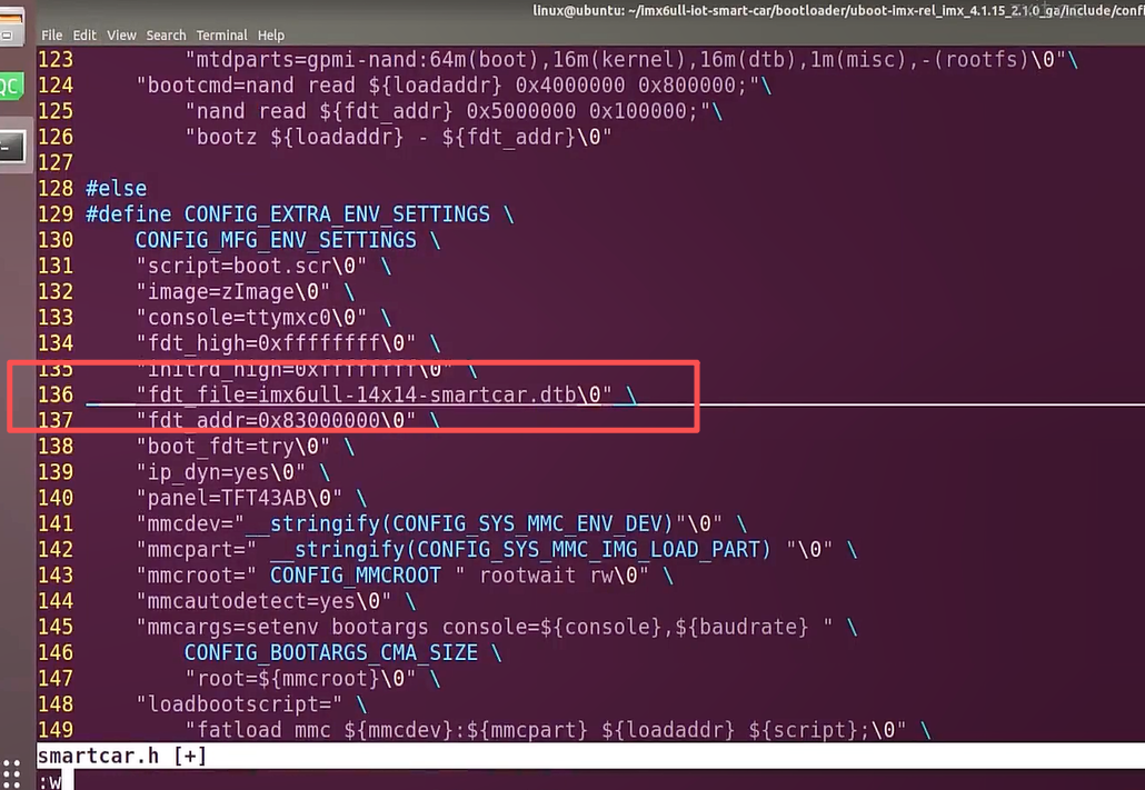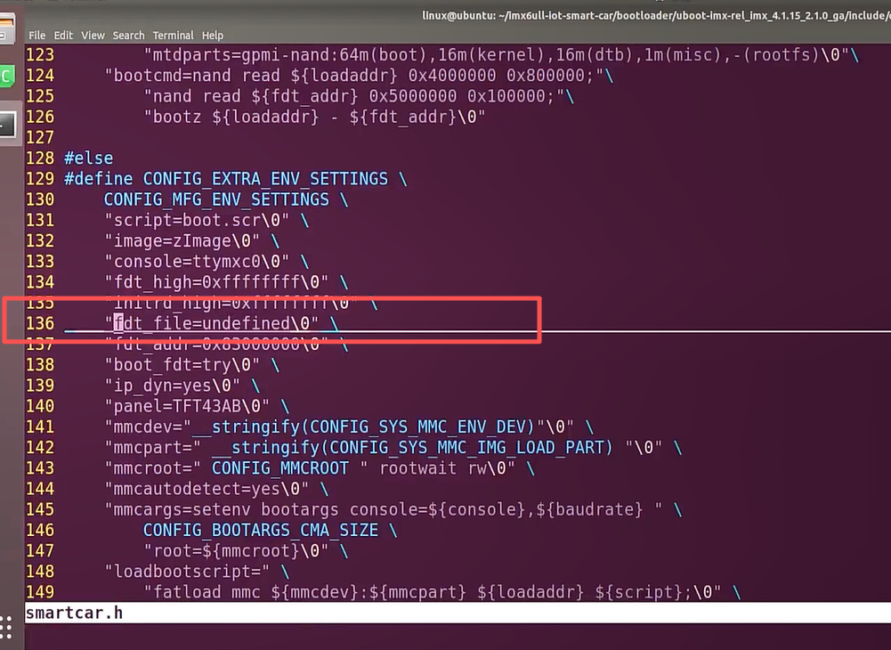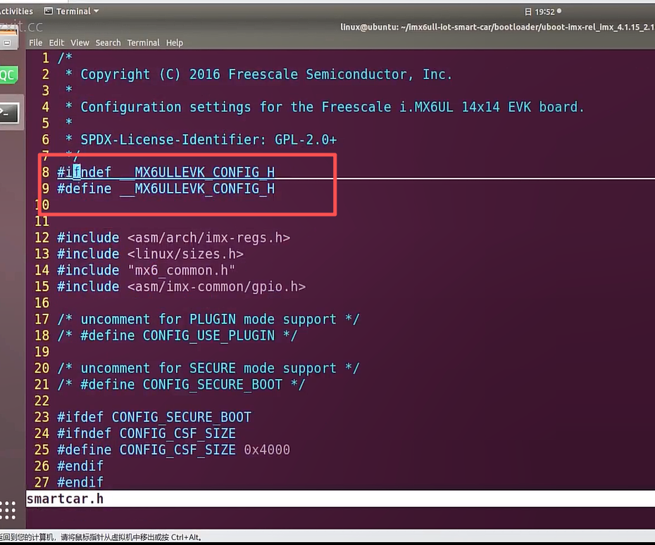 uboot-imx-rel_imx_4.1.15_2.1.0_ga/include/configs$ cp mx6ullevk.h smartcar.h
