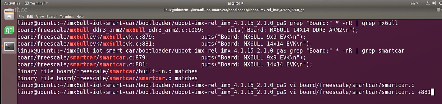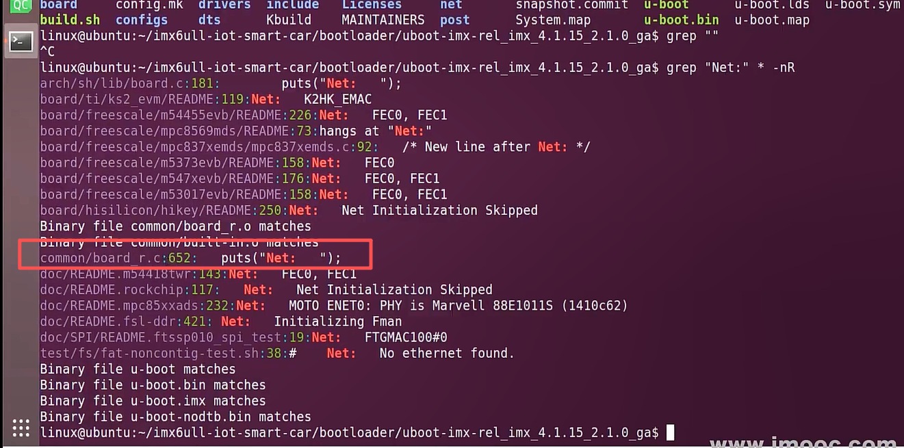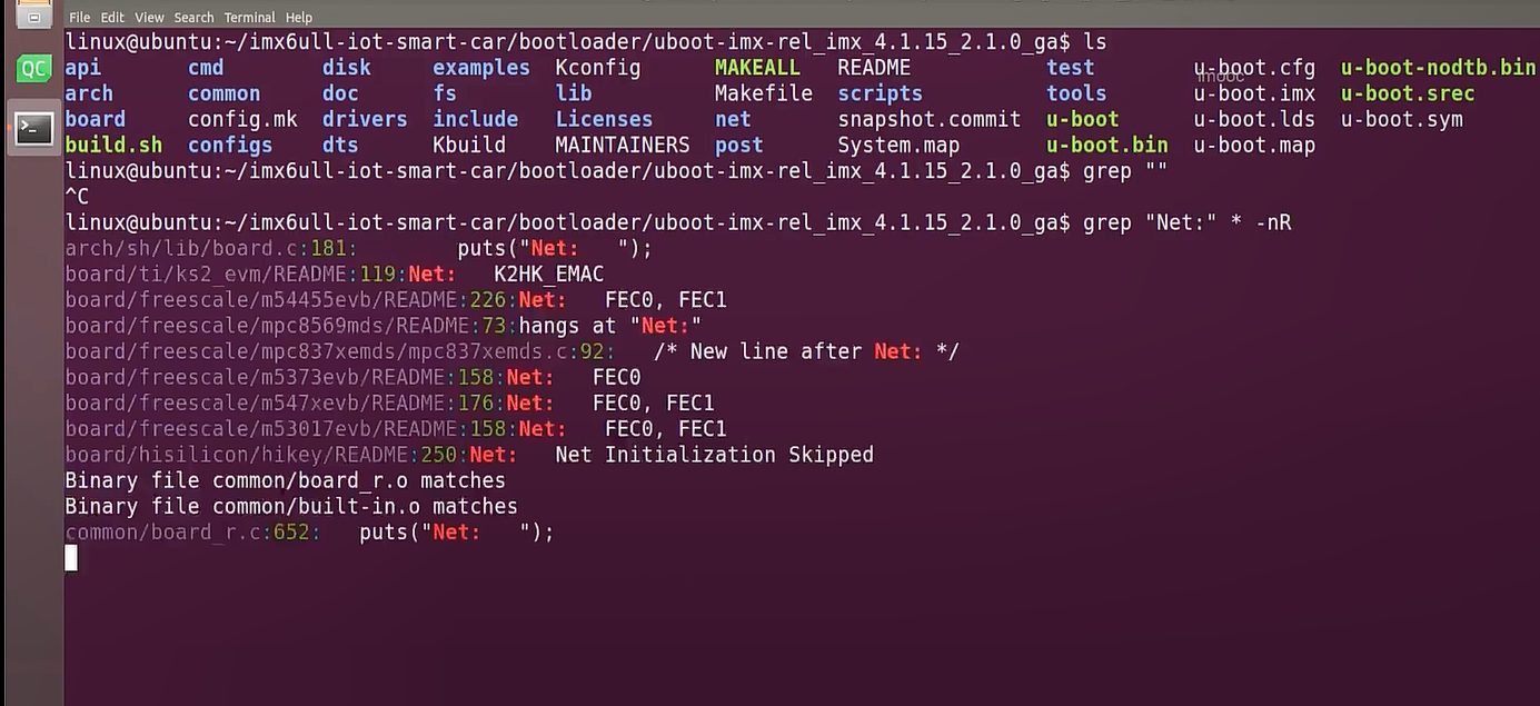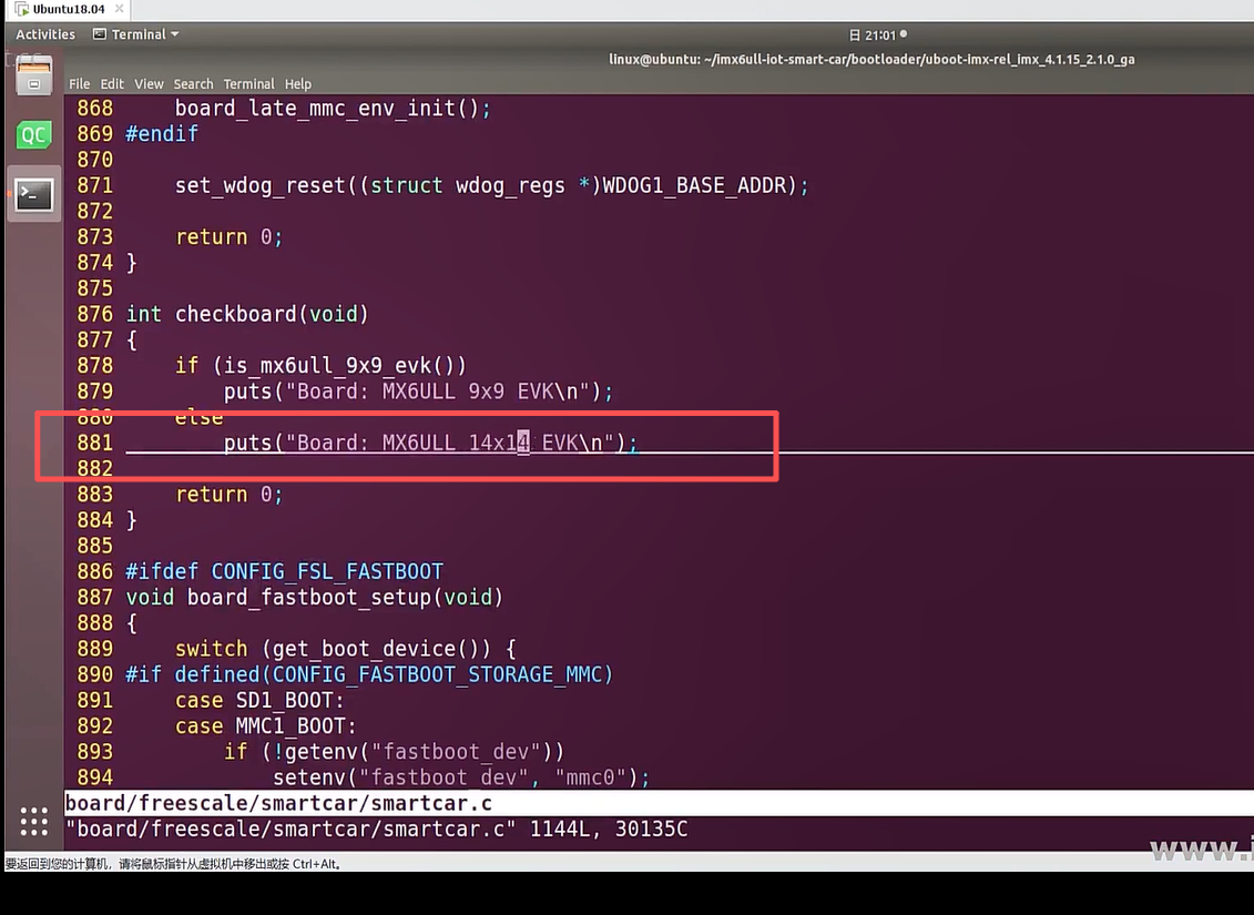 在u-boot源码中搜索"Board: MX6ULL"确定需要修改的文件: