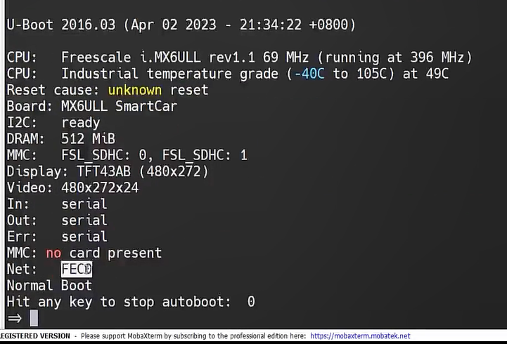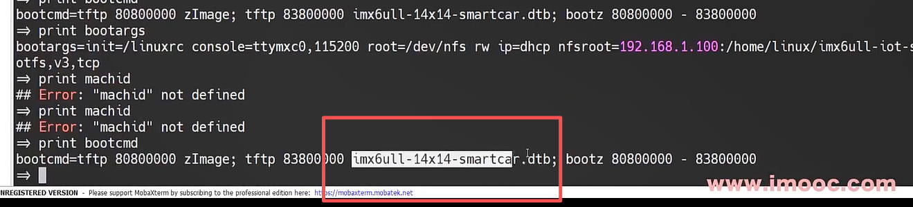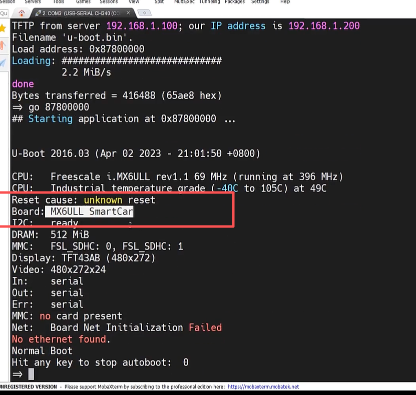 在 uboot 启动信息中会有“Board: MX6ULL 14x14 EVK”这一句,也就是说板子名字为 “MX6ULL 14x14