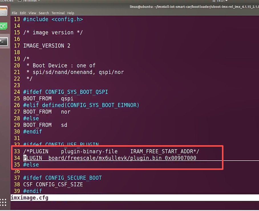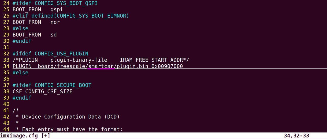 修改smartcar目录下的imximage.cfg文件的第34行,修改如下: