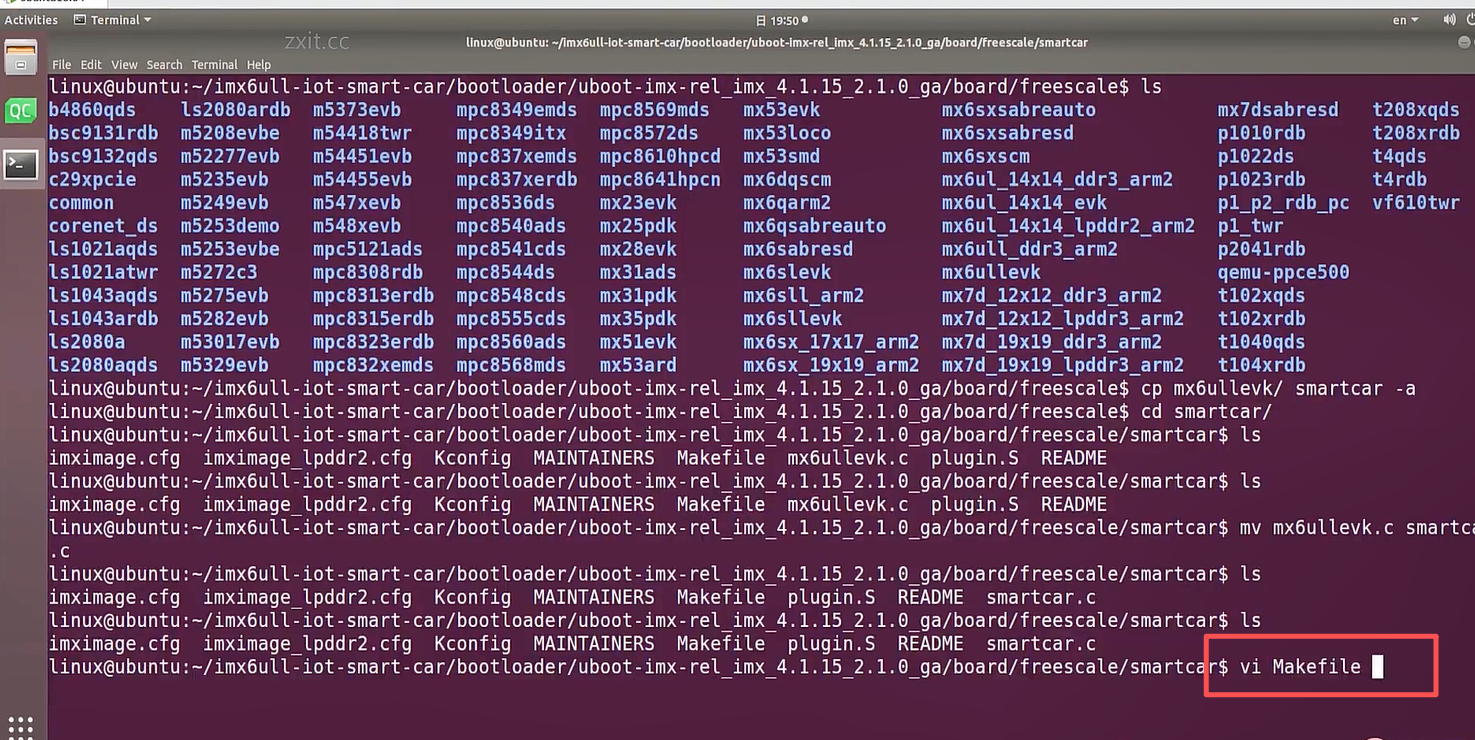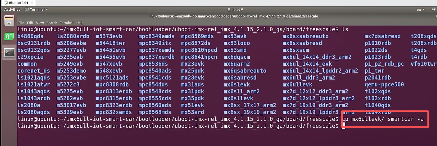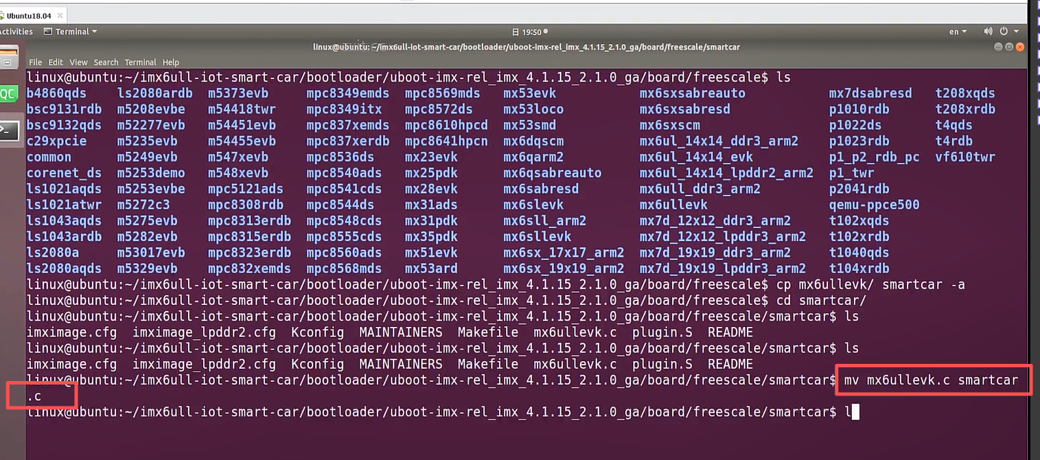 进入smartcar目录下,将mx6ullevk.c修改成smartcar.c。
