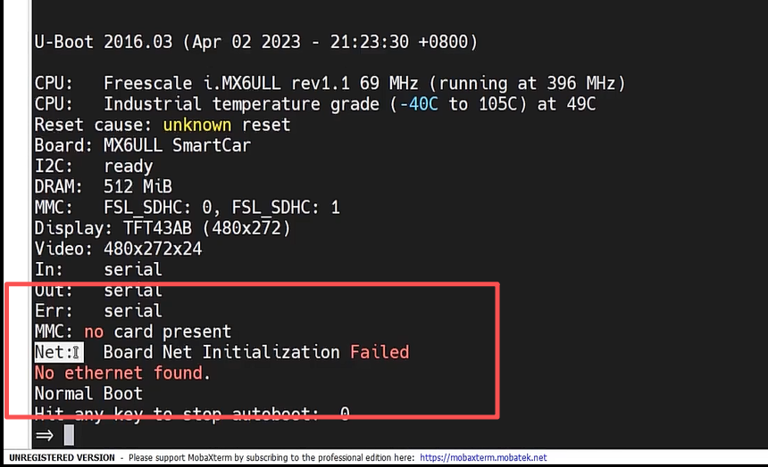 imx6ull芯片支持两个网卡,EVK开发板的u-boot默认使用的是网卡2,我们需要把它修改成网卡1