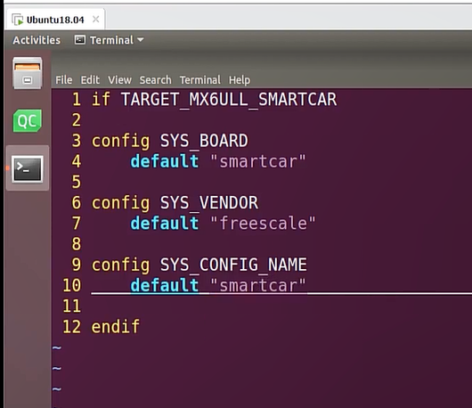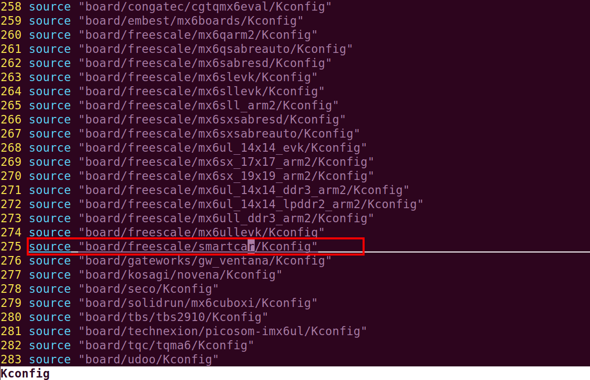 进入u-boot源码的board/freescale/smartcar目录下,修改Kconfig文件内容如下: