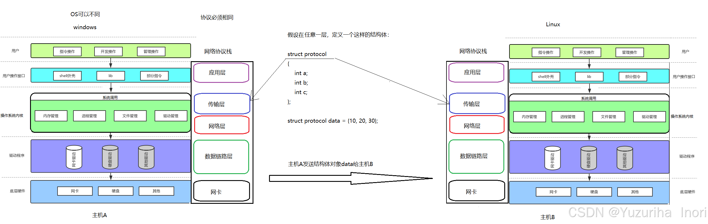 即使我们的电脑不联网,不进行网络通信,计算机内部的各个硬件也是有协议的。比如:其他设备与内存的通信,要有内容协议;其他设备与磁盘通信,要有磁盘协议。只不过我们感知不到而已。