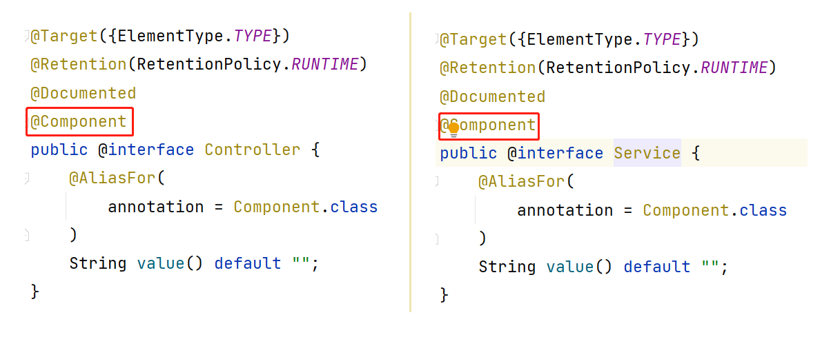 查看@Controller /@Service /@Repository /@configuration等注解的源码发现: