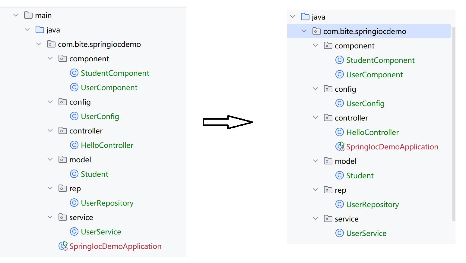 再修改项目工程的目录结构,测试bean对象是否生效:
