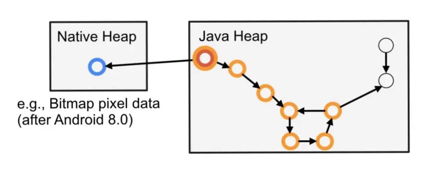 - Native Size:类对象所引用的 Native 对象 (蓝色节点) 所消耗的内存大小(以字节为单位)