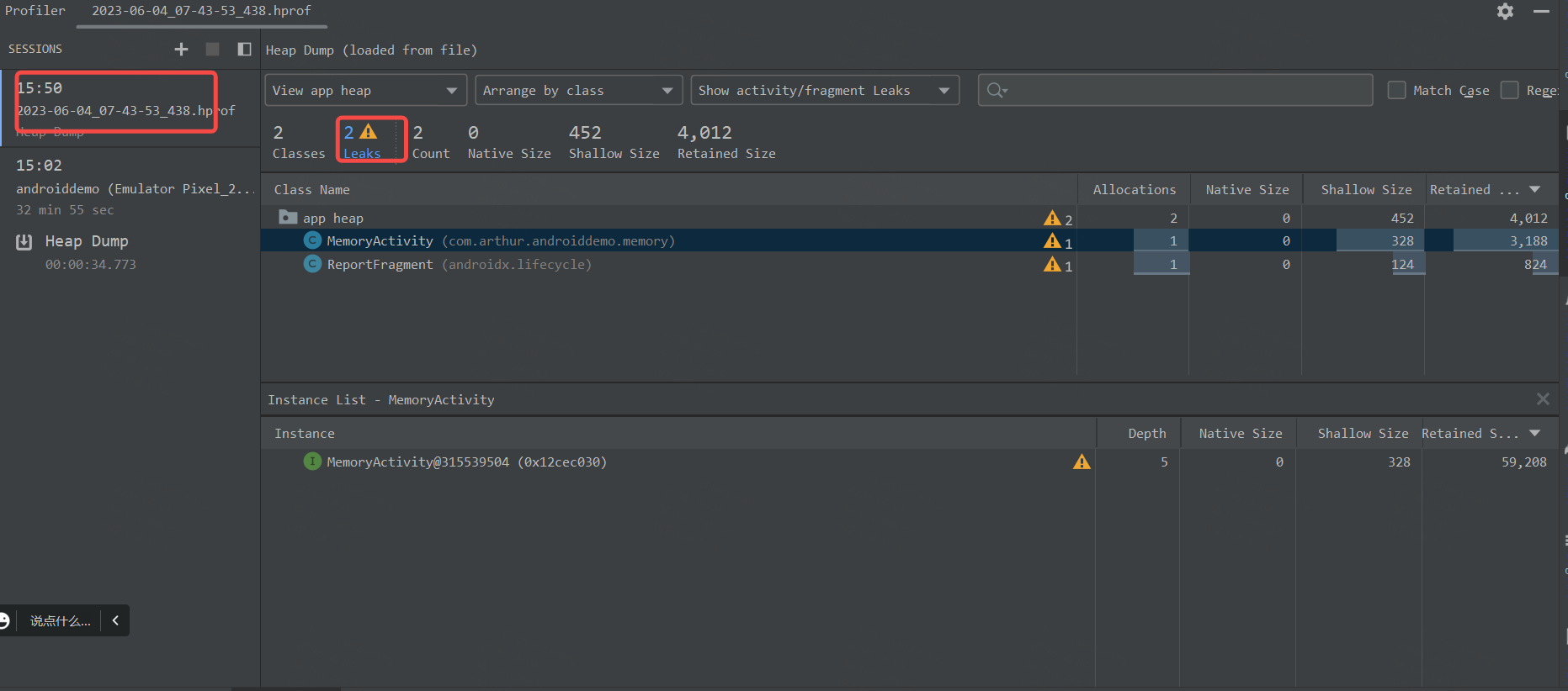 Heap dump file path: /data/user/0/com.arthur.androiddemo/cache/leakcanary/2023-06-04_08-12-56_118.hprof