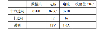 如上图: 0xFB 为数据头, 0x0C 为电压 12V, 0x10 为电流 1.6A
