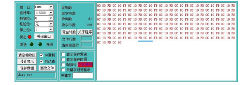 UART 串口波特率 115200, 发送的是 8 位十六进制数据。