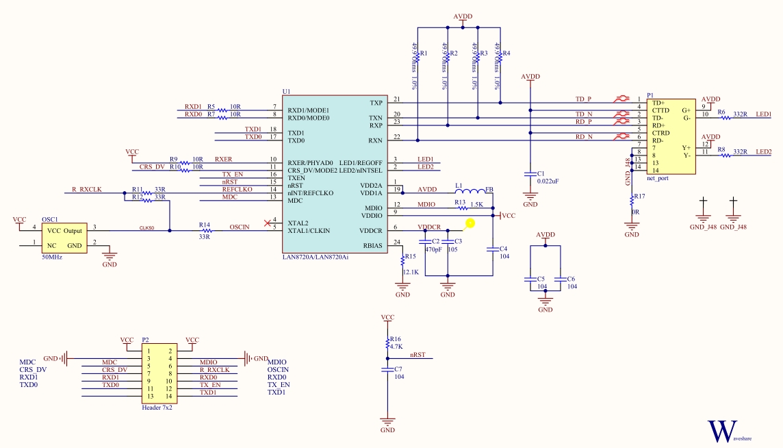 LAN8720A和LAN8720Ai的区别是工作温度不同,前者是商业级后者是工业级,LAN8720支持的接口是RMII