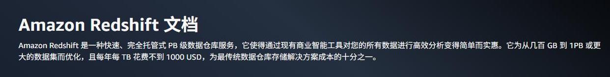 2. Amazon Redshift: Redshift数据仓库是亚马逊云提供的企业级的关系数据库查询和管理系统,适用于大规模数据的存储和分析,具备高性能、高可用性和扩展性的特点。Amazon Redshift Spectrum 驻留在独立于您的集群的专用 Amazon Redshift 服务器上。Amazon Redshift 将很多计算密集型任务(如谓词筛选和聚合)下推到 Redshift Spectrum 层。因此,Redshift Spectrum 查询使用的集群处理容量比其他查询的少得多。Redshift Spectrum 还可智能地扩展。基于您的查询的需求,Redshift Spectrum 可能能够使用数千个实例来利用大规模并行处理。