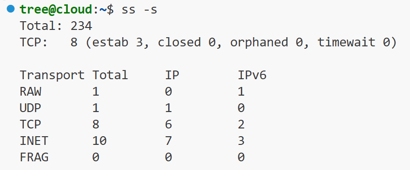 ss -s:查看详细的Socket统计信息。orphaned: 0 - 孤儿连接。