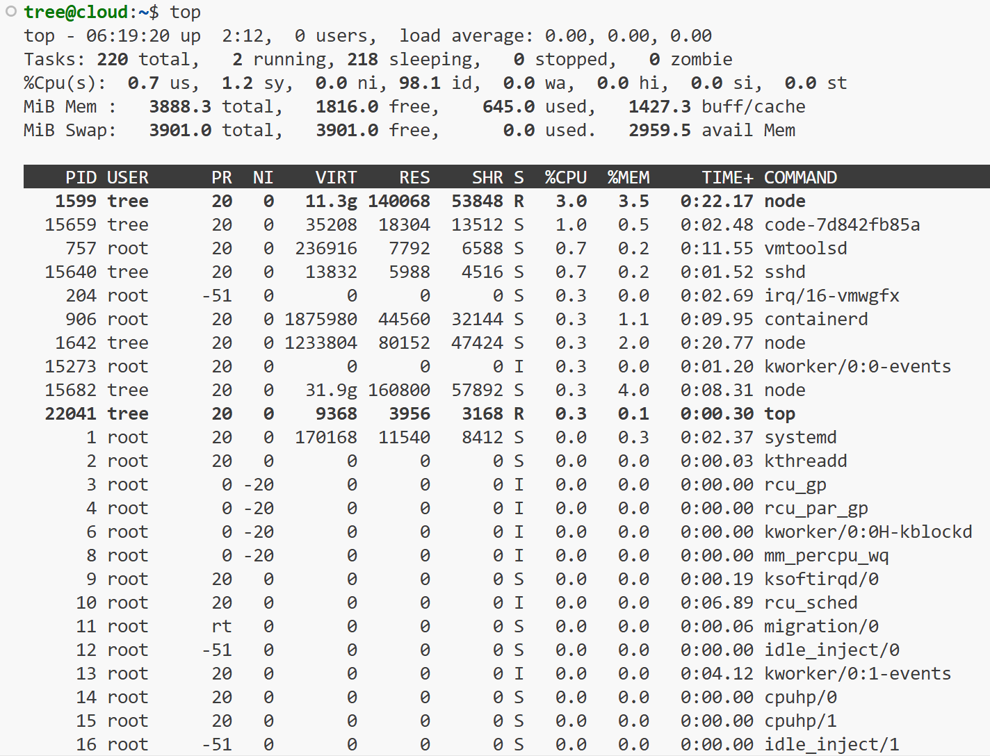 sleeping | 睡眠中的进程数。绝大多数进程都在等待某个事件(如用户输入、网络请求)而被挂起,这是正常状态。 |