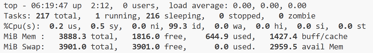 3. 内存分析:MiB Mem 行 + MiB Swap 行