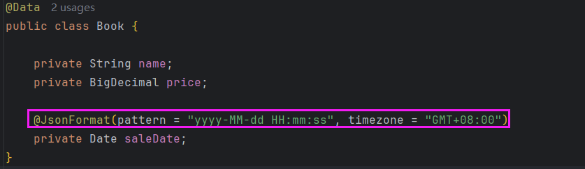 @JsonFormat(pattern = "yyyy-MM-dd HH:mm:ss", timezone = "GMT+08:00")