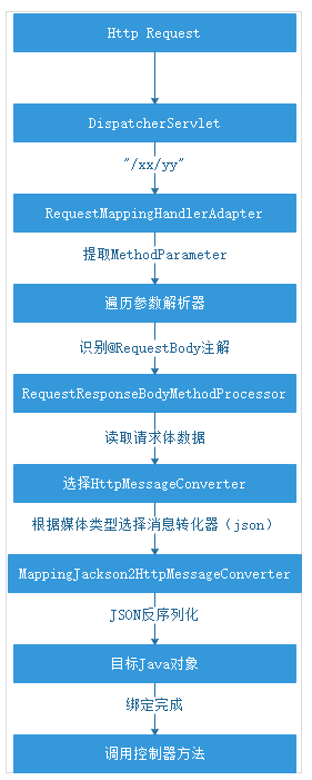 整个解析过程可以看作一条清晰的流水线,涉及了从 HTTP 请求到 Java 对象转化的每一步。下图清晰地展示了这一核心流程: