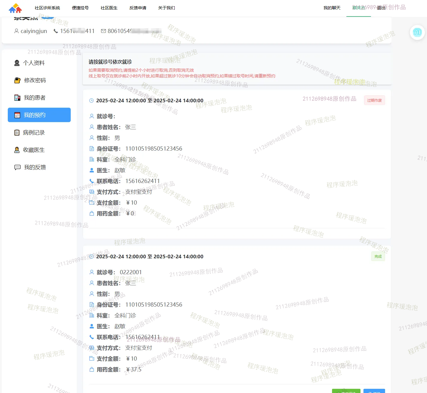 3) 预约取消与修改:若患者因特殊情况无法按时就诊,可在规定时间内通过系统取消或修改已有的预约挂号信息,避免造成医疗资源浪费。