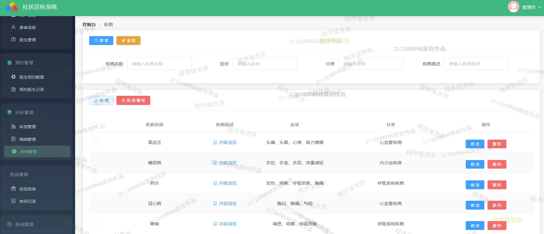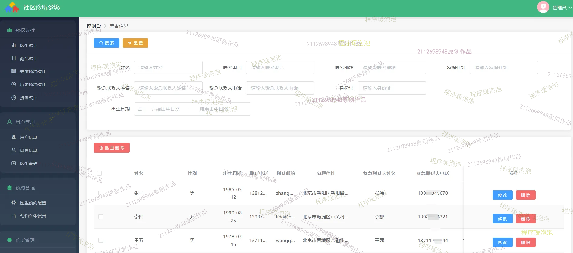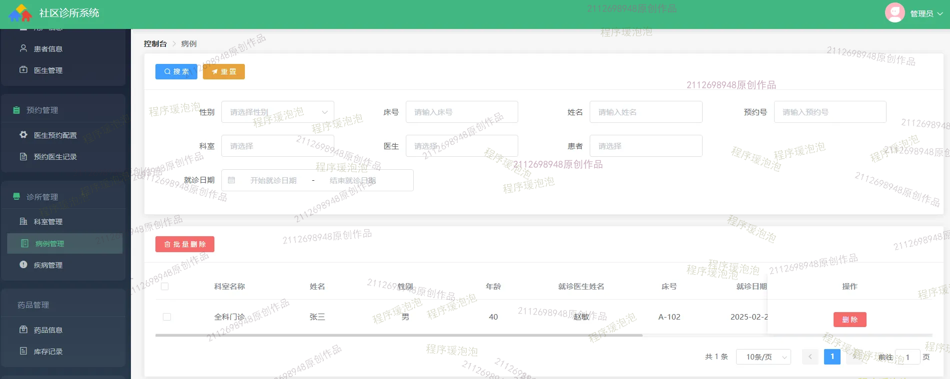 3) 病历管理:管理员可通过系统查看患者的基本信息和历史病历。
