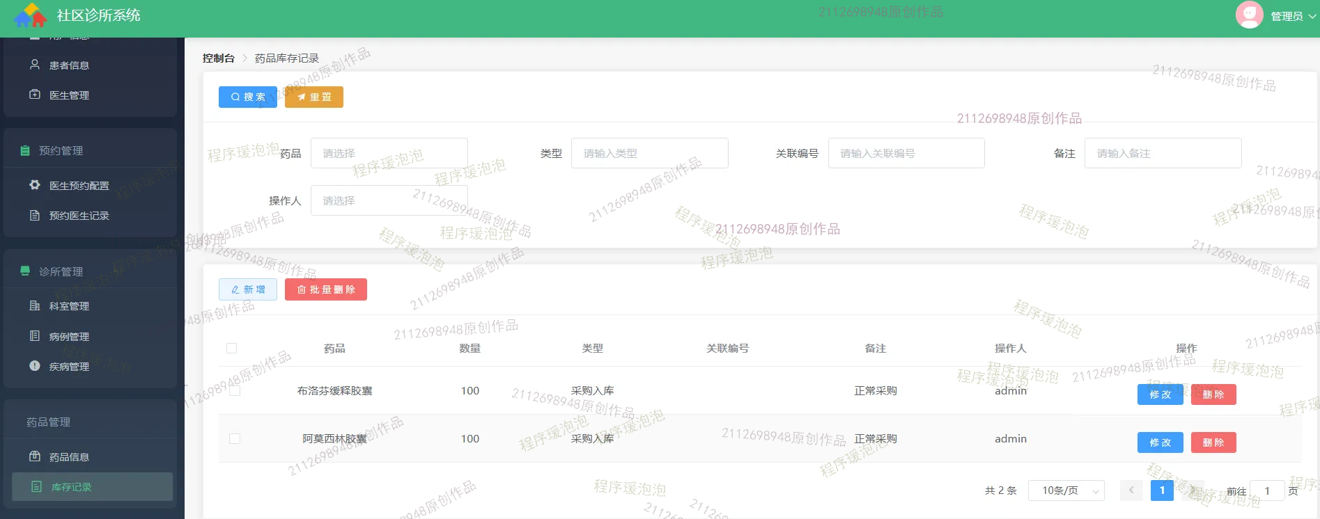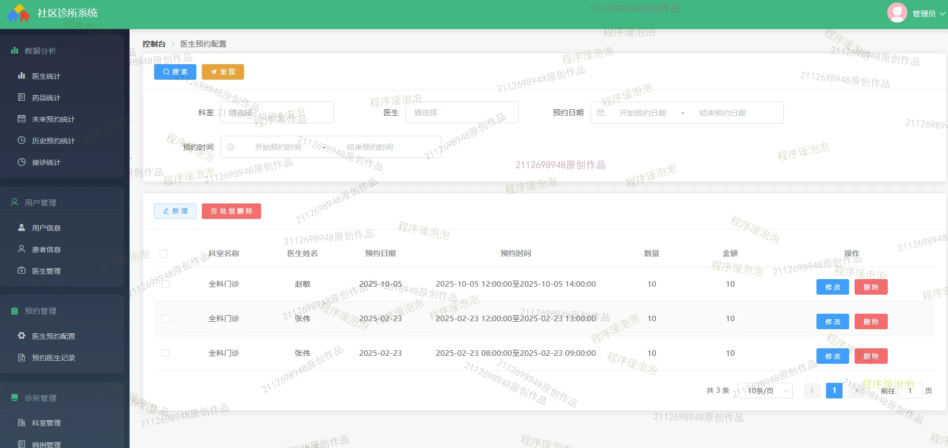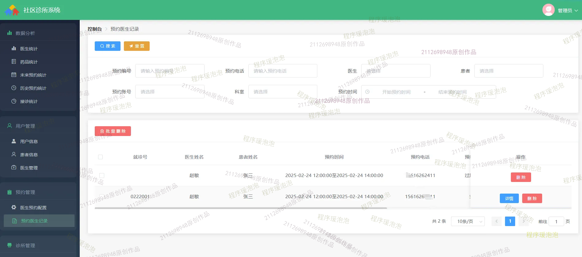 3) 病历管理:管理员可通过系统查看患者的基本信息和历史病历。
