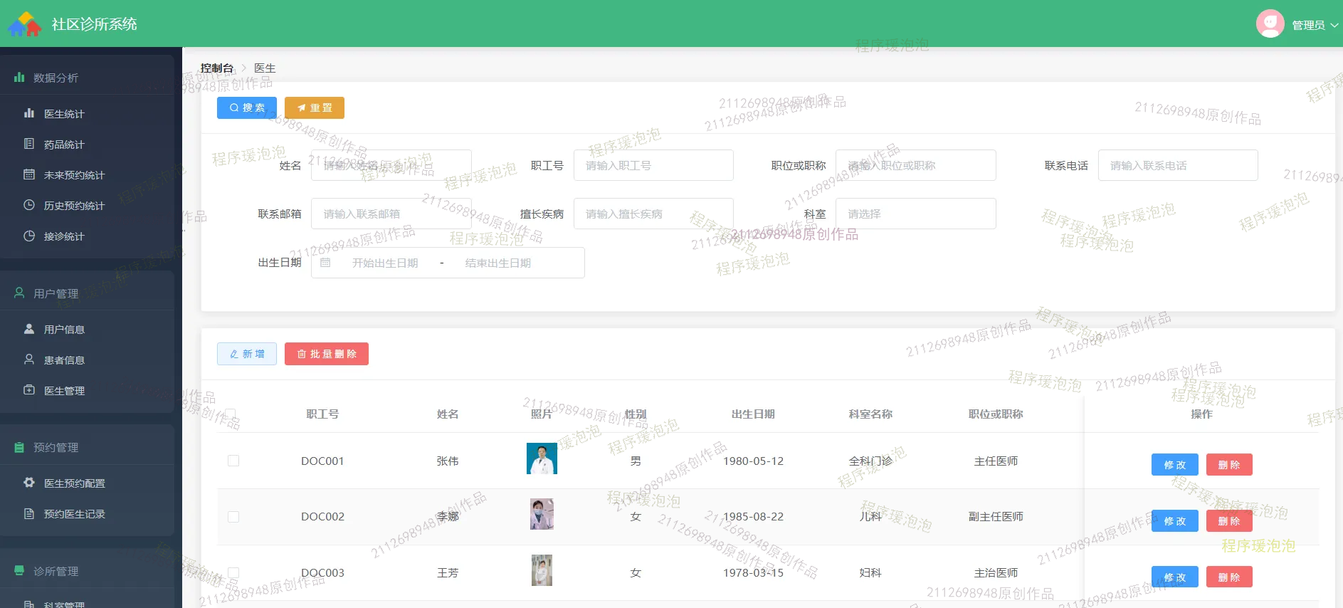 1) 员工管理:录入、编辑和删除诊所员工的基本信息,如姓名、岗位、联系方式等信息。