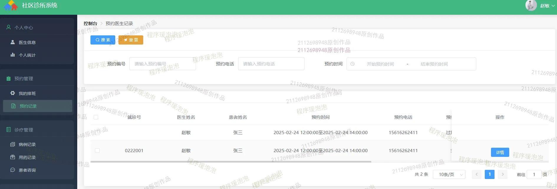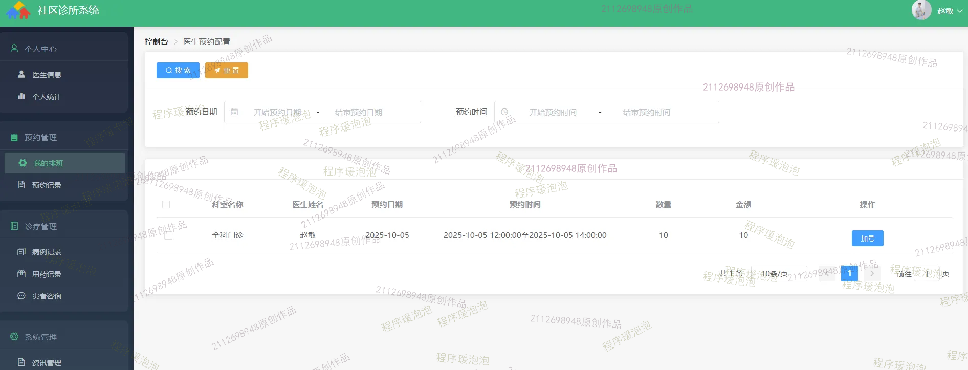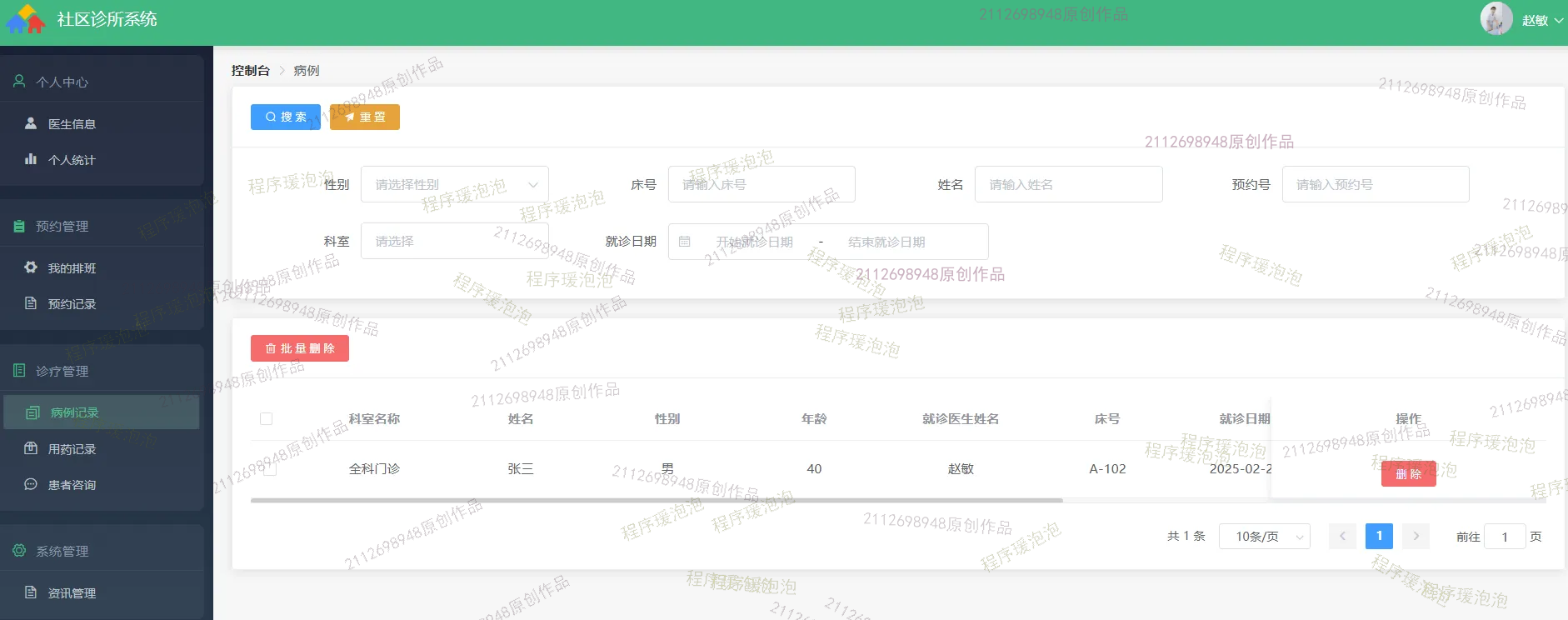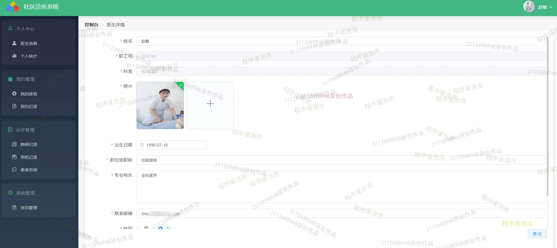 1) 医生查询与选择:登录系统后,患者能够查看诊所内各位医生的基本信息,根据自身需求选择合适的医生进行预约挂号。