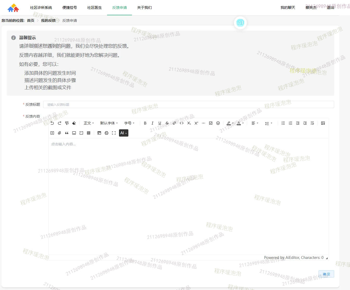 4) 历史病历查看:患者可以查看自己以往在社区诊所的所有就诊病历,包括症状描述、诊断结果、治疗方案、等信息,方便了解自己的病情发展和诊疗过程。