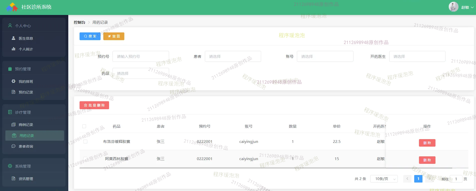 4) 诊疗记录管理:管理员可以查看用户的诊疗记录。