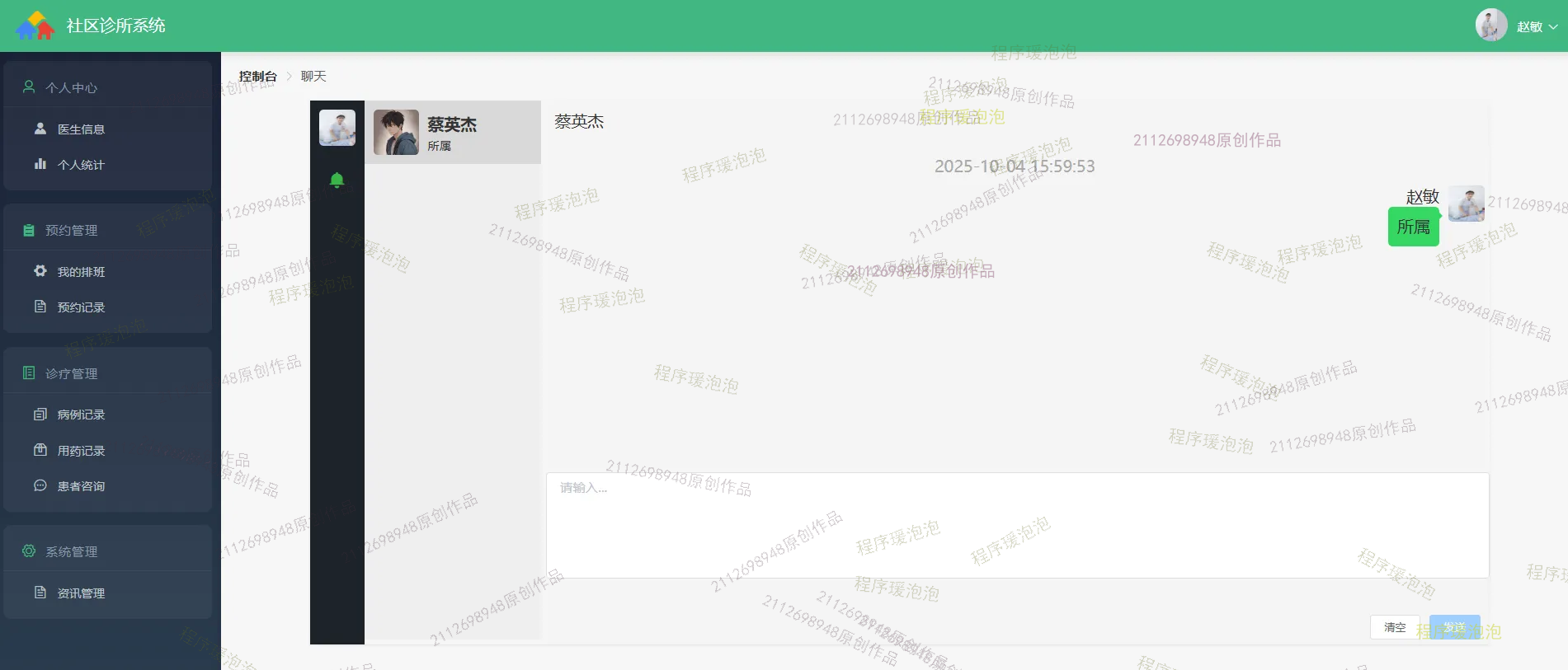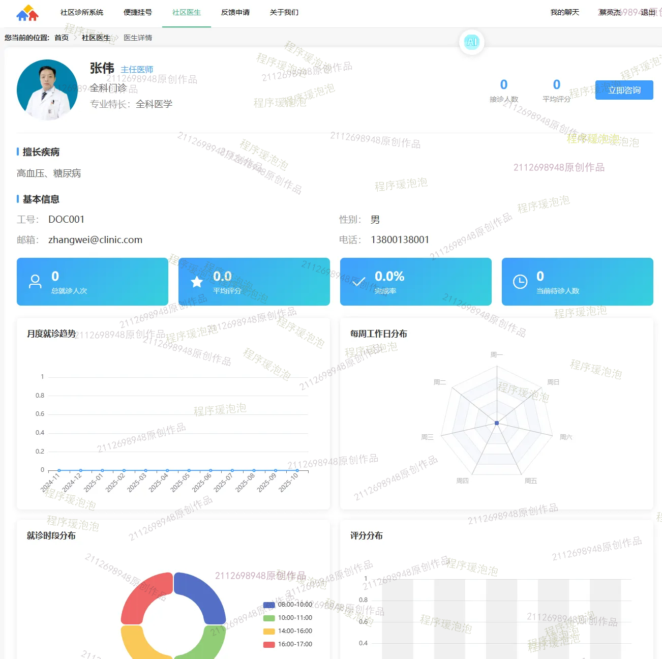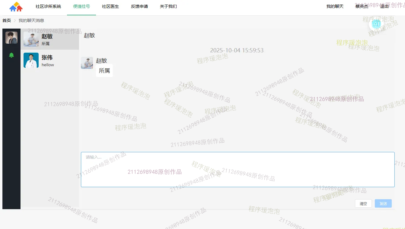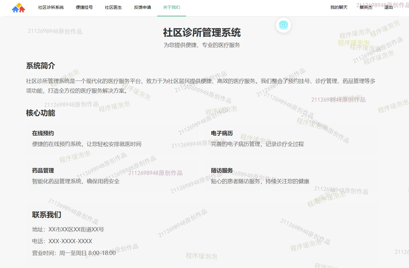 基于SpringBoot+Vue的社区诊所管理系统(AI问答、webSocket实时聊天、Echarts图形化分析)