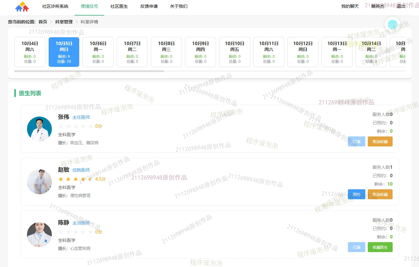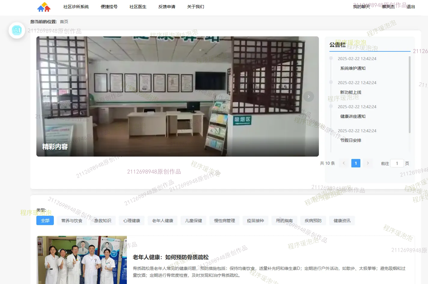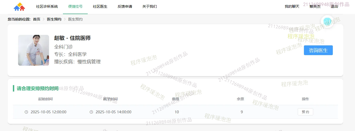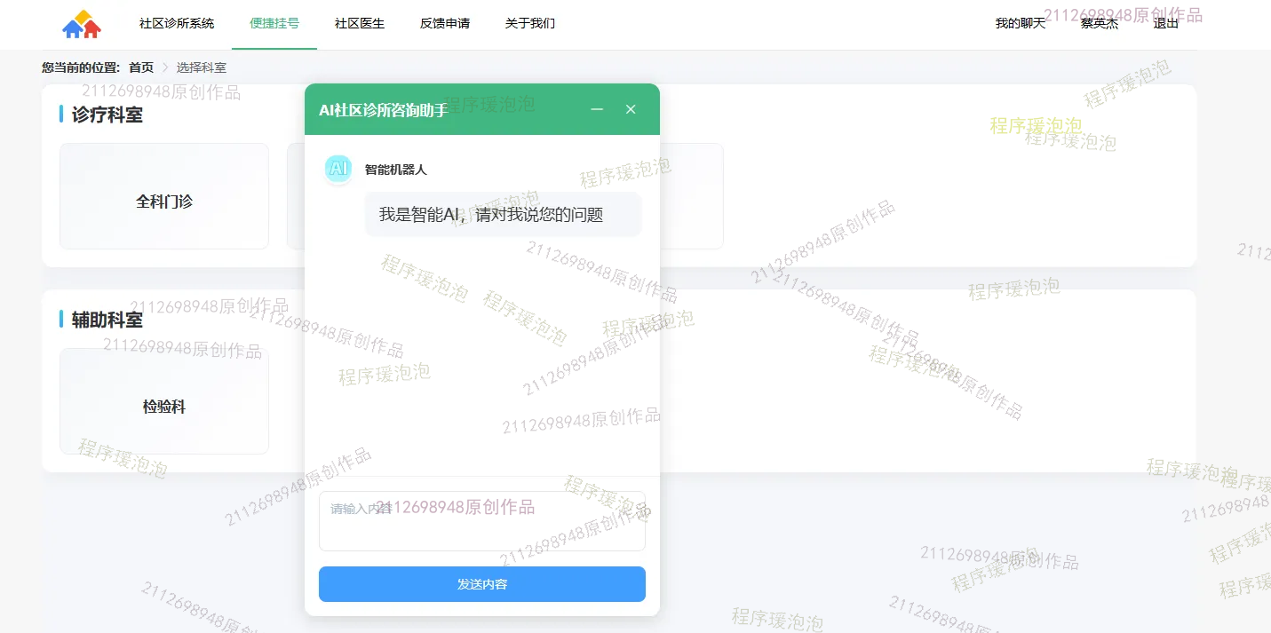 基于SpringBoot+Vue的社区诊所管理系统(AI问答、webSocket实时聊天、Echarts图形化分析)