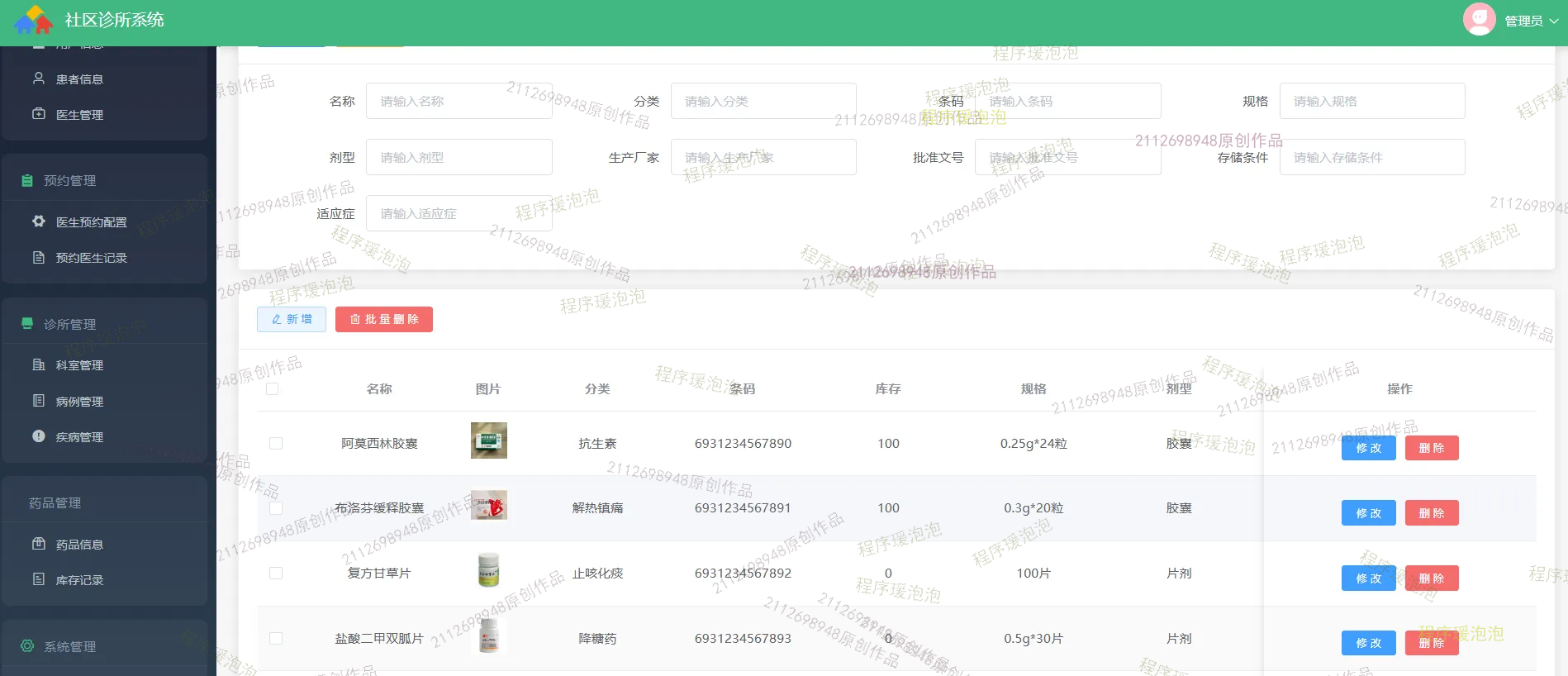 8) 药品管理:管理员上传药品,以及给药品进行定价。