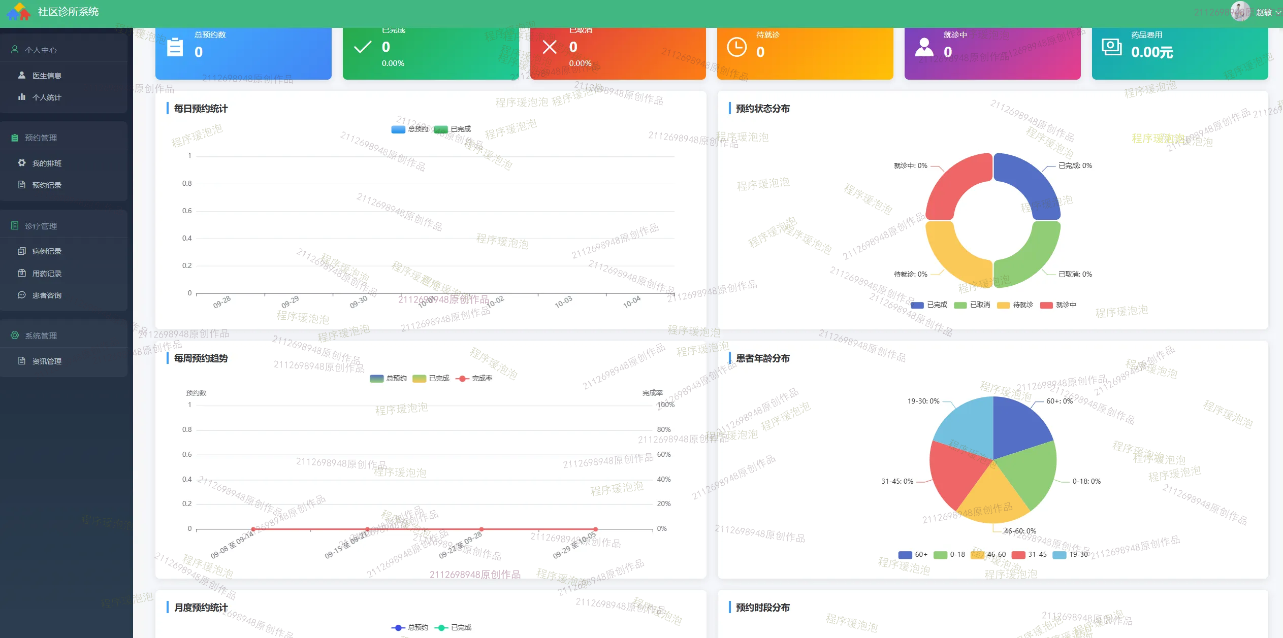 5) 诊疗数据统计:医生可以查看自己的个人诊疗数据,如每日、每周、每月的接诊人数、不同疾病的诊疗数量等,通过这些数据了解自己的工作情况和业务发展趋势。